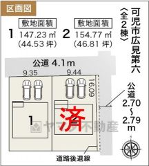 土地面積基準 | 公簿 | 接道 | 公道 北 幅員4.1m (接面9.3m) |